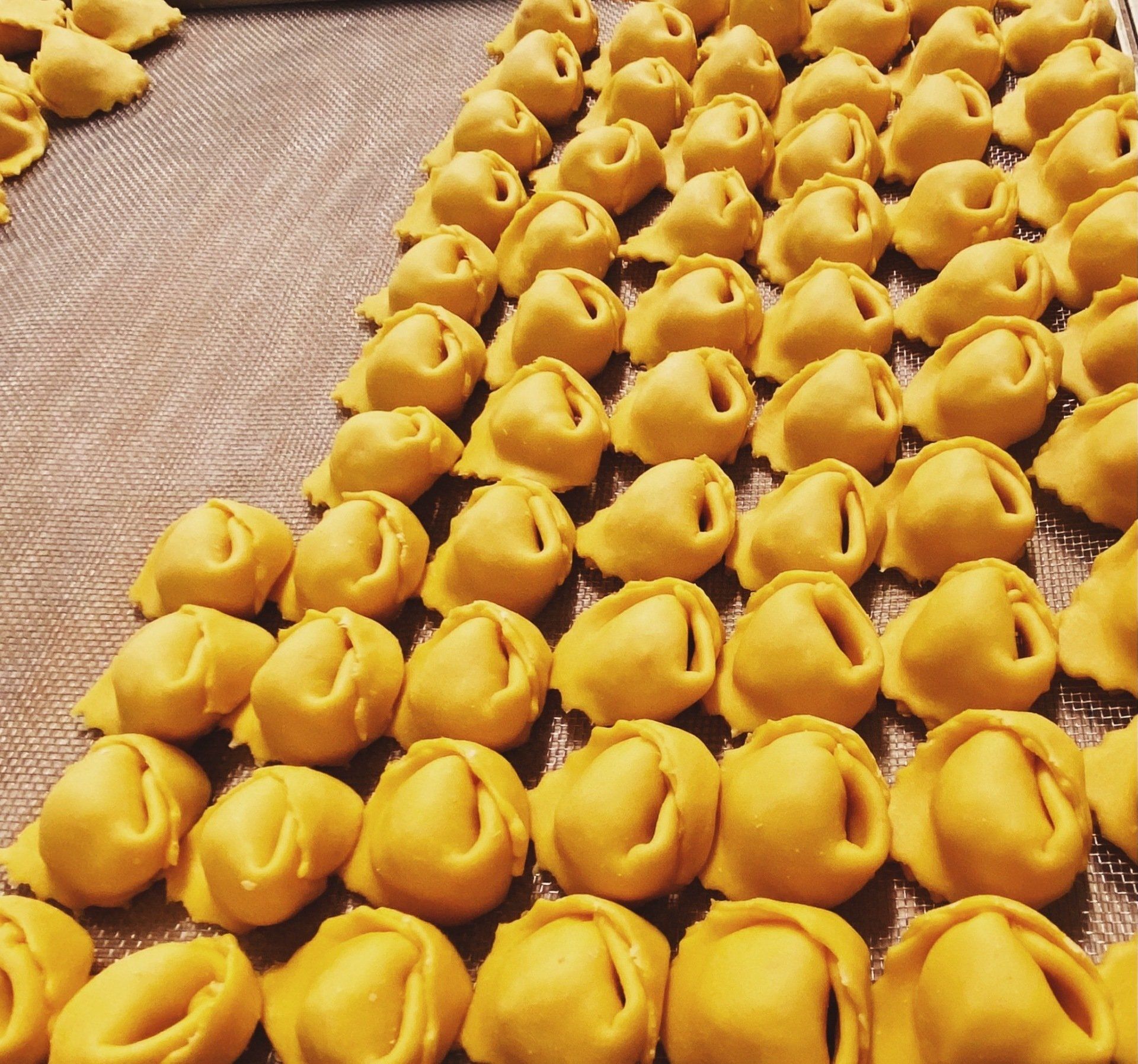 Cappelletti al ragù, gramigna panna salsiccia e funghi, paglia e fieno