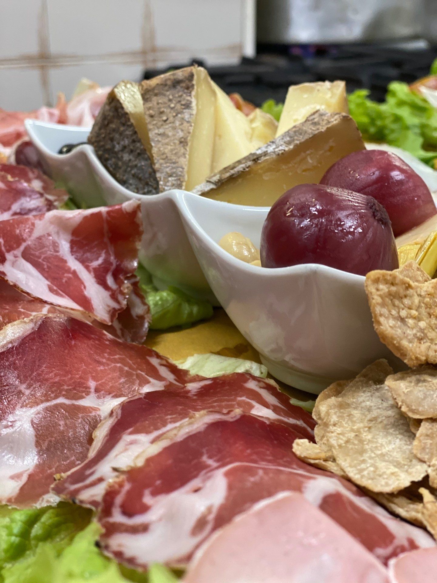 Affettati misti, taleggio, sott'oli, sott'aceti, schiacciatina